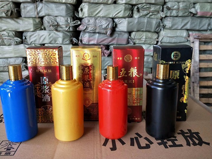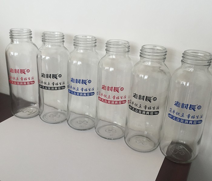 蒙砂酒瓶是在制品玻璃上,粘附一定大小面積的玻璃色釉粉,玻璃瓶廠(chǎng)經(jīng)過(guò)580~600℃的高溫烘烤,使玻璃色釉涂層凝結(jié)在玻璃外表,并顯現(xiàn)出具有與玻璃主體不同顏色的一種裝飾辦法。粘附玻璃色釉粉,可用排筆涂刷,亦可用膠輥滾涂。經(jīng)過(guò)絲印加工,能夠得到蒙砂面的樓空?qǐng)D案。 其辦法是:在玻璃制品外表上,絲印一層由阻熔劑構(gòu)成的圖案紋樣。